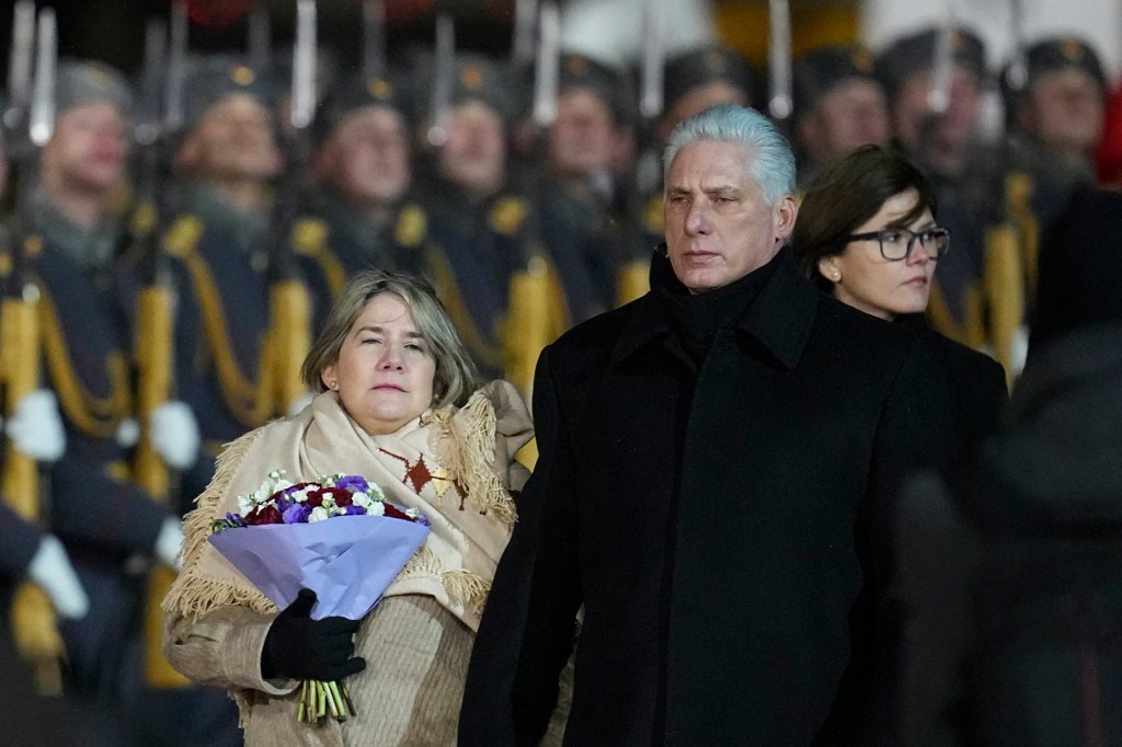 الرئيس الكوبي ميغيل دياز كانيل وزوجته عند وصولهما إلى موسكو ، 19 تشرين الثاني/نوفمبر (أ ف ب)