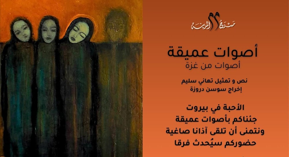"أصوات عميقة/أصوات من غزة" للممثّلة الفلسطينية، تهاني سليم، من كتابتها وإخراج، سوسن دروزة، تقدّم تجربة إنسانية لا يزال جرحها غائراً وحارّاً، مجسّدة معاناة سيدات غزة وشاباتها اللواتي عشن اختبارات لا مثيل لها تحت وقع جريمة الإبادة الإسرائيلية.