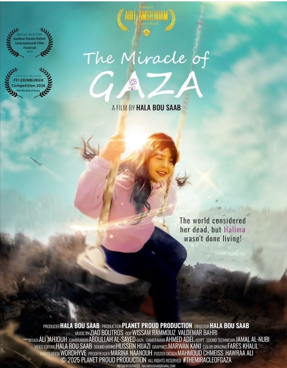 ويكرّم الفيلم، الذي بدأ العمل عليه في أيلول/سبتمبر عام 2024، رحلة الطفلة حليمة، ويذكّر العالم بأن الحياة، حتى في قلب الحرب، تصرّ على أن تُعاش بشجاعة وبصوت عالٍ. بعيداً عن قصة حليمة الفردية، يعكس وثائقي "معجزة غزة" الصدمة الصامتة التي يعيشها أطفال القطاع، ويُظهر أن الأمل يستمر من خلال الشجاعة والمثابرة.